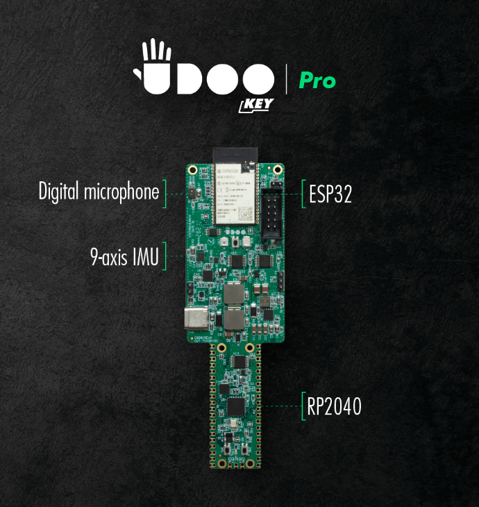 UDOO KEY é uma placa totalmente programável que combina Raspberry Pi RP2040 e ESP32 em uma única solução poderosa. Ele permite que você use RP2040, ESP32 ou ambos para construir qualquer projeto de IA de acordo com suas necessidades.